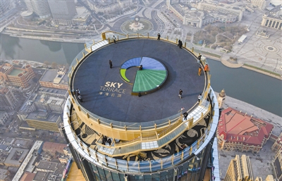 昨天,坐落于津湾广场核心位置的津湾云顶高空观景台正式对外开放。这处位于300米高空的观景平台,将成为俯瞰天津城市风貌的绝佳之地。